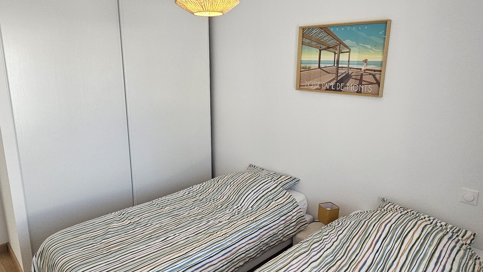 EXCLUSIVITÉ ! À 1500 mètres du bourg, 250 mètres de la forêt domaniale et 1000 mètres des plages de NOTRE DAME DE MONTS, belle maison récente de 2021 (NORMES RT 2012), de plain-pied, de type 4, bien agencée sans aucune perte de place, d'une surface habitable d'environ 73,90 m². Le bien comprend : un lumineux séjour/salon orienté SUD et EST d'environ 31 m² avec coin cuisine aménagé et équipé, une buanderie, WC avec lave-mains, une salle de douche, 3 chambres avec placard. Piscine bois semi-enterrée avec PAC. Le tout sur un terrain clos d'environ 369 m². Les informations sur les risques auxquels ce bien est exposé sont disponibles sur le site Géorisques