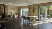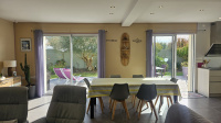 RARE ! Au calme, à 300 mètres de la forêt domaniale, 600 mètres du bourg et 800 mètres des plages, belle maison de 2014 d'environ 122,6 m² habitables + garage de 23,5 m² avec grenier et un studio de 16 m² avec douche et WC. Elle comprend au rez-de-chaussée, un vaste séjour/salon d'environ 45,77 m² avec cuisine ouverte aménagée et équipée, donnant sur grande terrasse avec store banne orientée PLEIN SUD, une buanderie, une chambre parentale avec salle de douche et dressing. Un garage attenant avec grenier et à l'arrière un studio avec douche et WC. A l'étage, un palier, deux chambres avec placard et une salle de douche avec WC. Le tout sur un joli terrain clos d'environ 414 m². LES PLUS : habitable de suite, maison de qualité, secteur recherché, peu d'entretien extérieur. Les informations sur les risques auxquels ce bien est exposé sont disponibles sur le site Géorisques