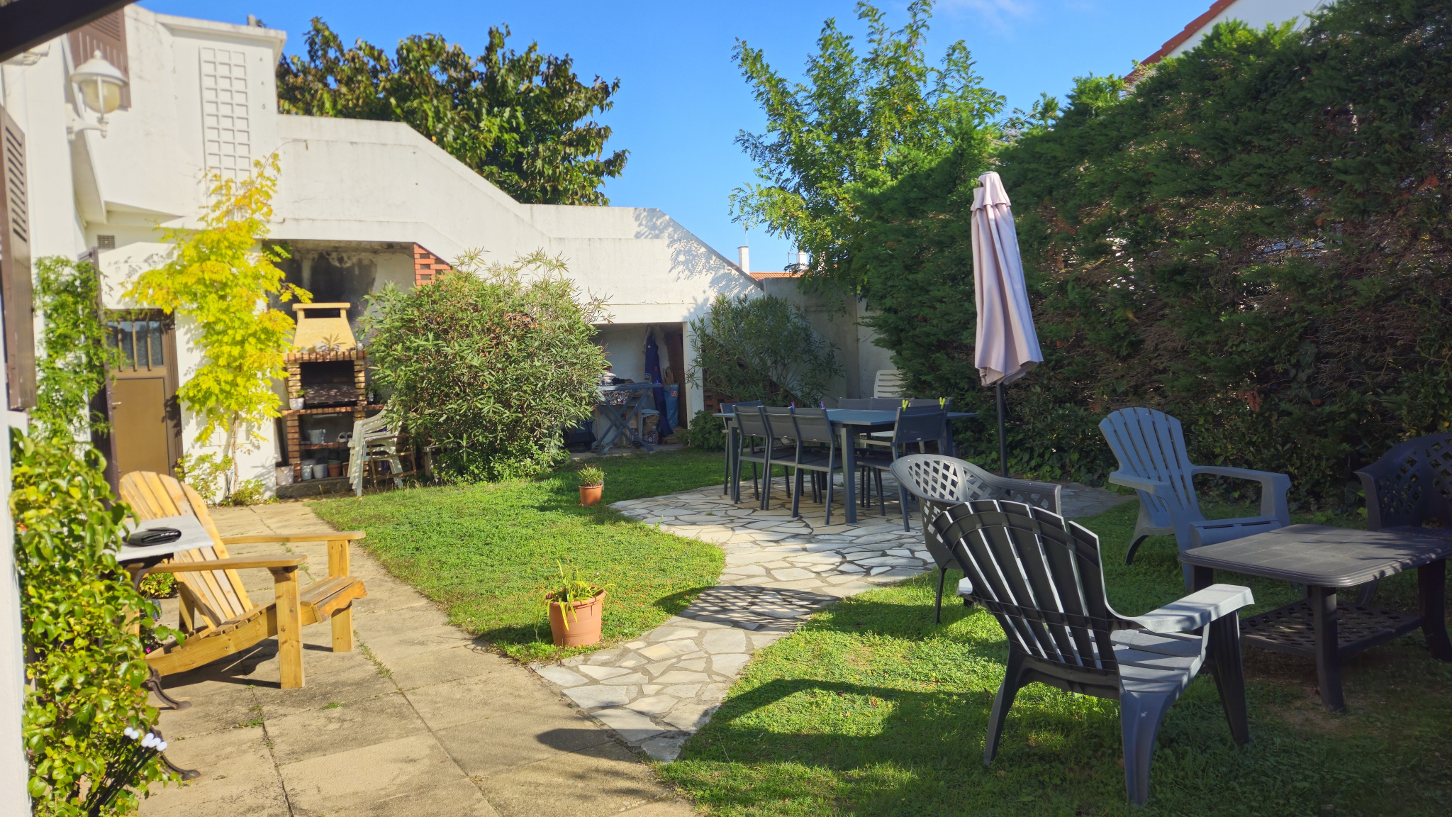 EXCLUSIVITÉ ! UNIQUE À NOTRE DAME DE MONTS ! QUARTIER HISTORIQUE ! À 600 mètres du centre bourg et à 400 mètres de la plage centrale, Belle maison de 1937, d'une surface habitable d'environ 180 m². Le bien est composé, au rez-de-chaussée, d'une vaste pièce de vie de 42 m², coin cuisine aménagé et équipé de 8 m², deux chambres de 13,40 m² chacune, WC et une salle de douches. À l'étage (accessible par l'intérieur et l'extérieur) : trois chambres (20,65 m², 40,65 m² et 9,70 m²) et une salle de douches avec WC communicante avec les chambres. Atelier de 4,4 m² et un garage de 22 m². Le tout sur un joli terrain clos arboré d'environ 626 m². Les informations sur les risques auxquels ce bien est exposé sont disponibles sur le site Géorisques