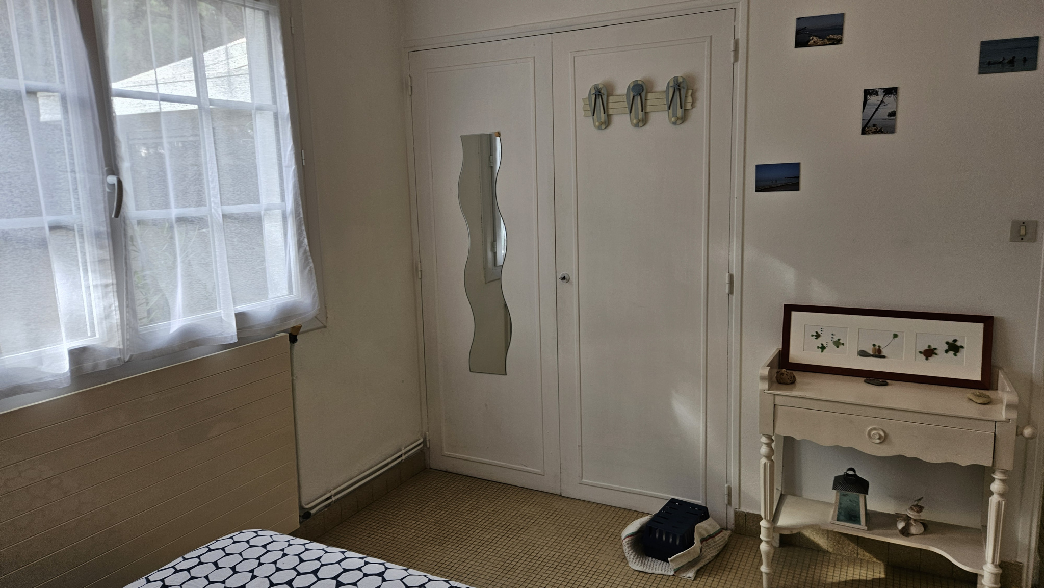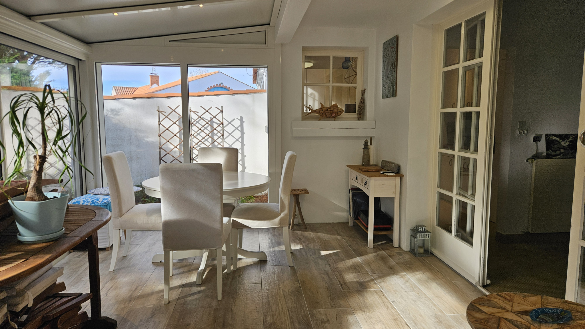 EXCLUSIVITÉ ! Jolie maison de PLAIN-PIED de type 3 + garage, habitable de suite, à 1200 mètres du bourg et 800 mètres de la plage de la Braie et à 50 mètres de la forêt domaniale. Cette maison de 52,58 m² loi Carrez + 14,7 m² de véranda, comprend un beau séjour 19 m² avec poêle à bois, orienté SUD, une cuisine, deux chambres avec placard, une salle de douche et WC indépendants. Cabanon de jardin. Jouissance privative d'un jardin d'environ 200 m². Copropriété de 17 lots. Budget annuel syndic : 200 €. LES PLUS : PAC AIR/AIR, DV PVC, CUISINE REFAITE , VÉRANDA RÉCENTE ! Les informations sur les risques auxquels ce bien est exposé sont disponibles sur le site Géorisques