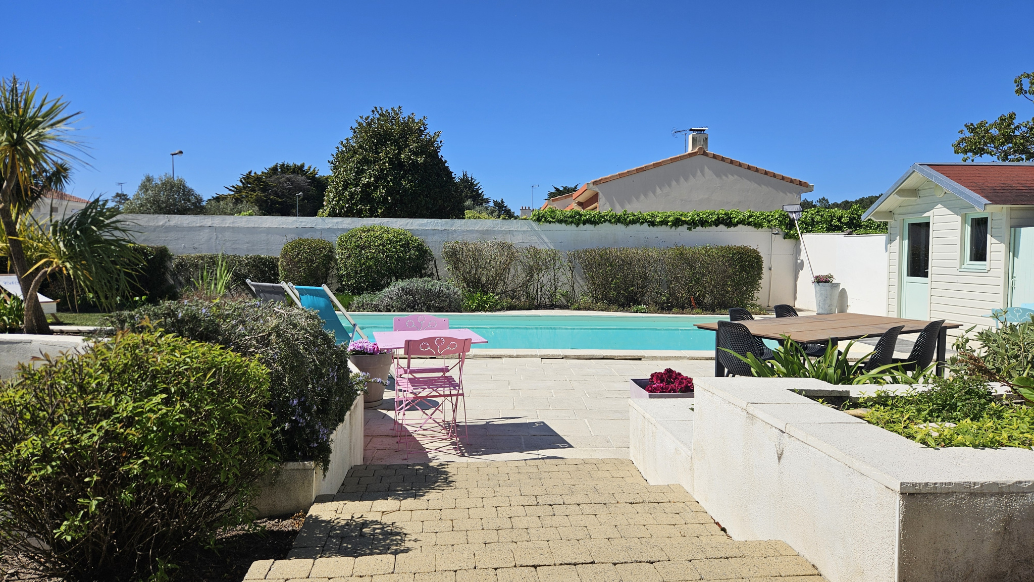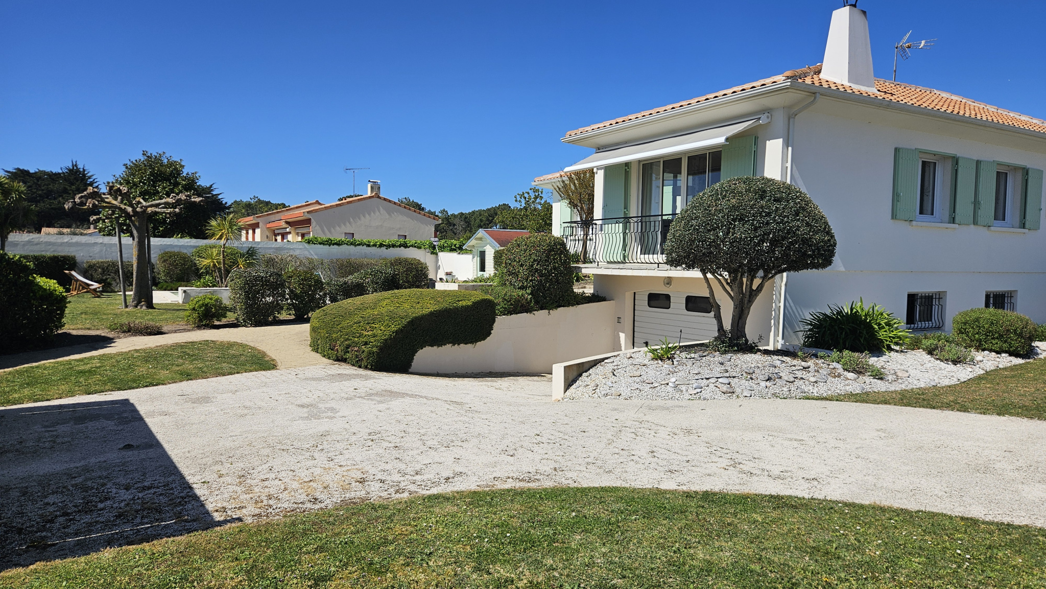 UNIQUEMENT CHEZ MONTS IMMOBILIER ! À 100 mètres de la forêt domaniale, 1000 mètres de la plage et 1600 mètres du centre bourg de Notre Dame de Monts, belle maison avec piscine 5 X 10 chauffée PAC, le bien est sur deux niveaux pour une surface habitable d'environ 165 m², il a été rénové sur factures sur plusieurs années. La maison comprend au rez-de-chaussée surélevé : une entrée, une pièce de vie de 36 m² orientée EST, SUD et OUEST, une grande cuisine 19,70 m² aménagée et équipée, trois belles chambres, WC séparés, une salle de bains avec baignoire et grande douche. Au rez-de-jardin, un logement indépendant de type 2 comprenant : une pièce de vie avec coin cuisine, une chambre avec dressing, WC et salle de douche. Chaufferie. Cave. Garage. Indépendant un grand bâtiment de 143 m² pour stockage et atelier. Le tout sur un terrain clos arboré de 2000 m². Puits. POSSIBILITÉ DE DIVIVER LE TERRAIN ET DE CONSTRUIRE. Les informations sur les risques auxquels ce bien est exposé sont disponibles sur le site Géorisques